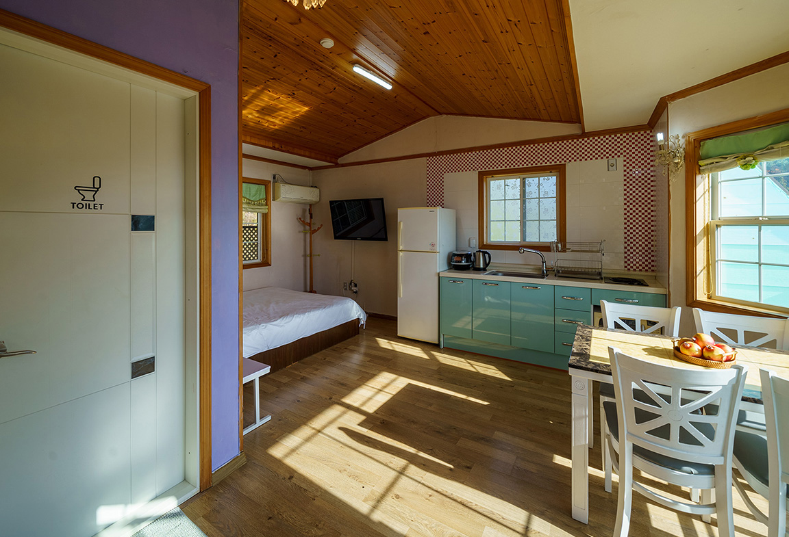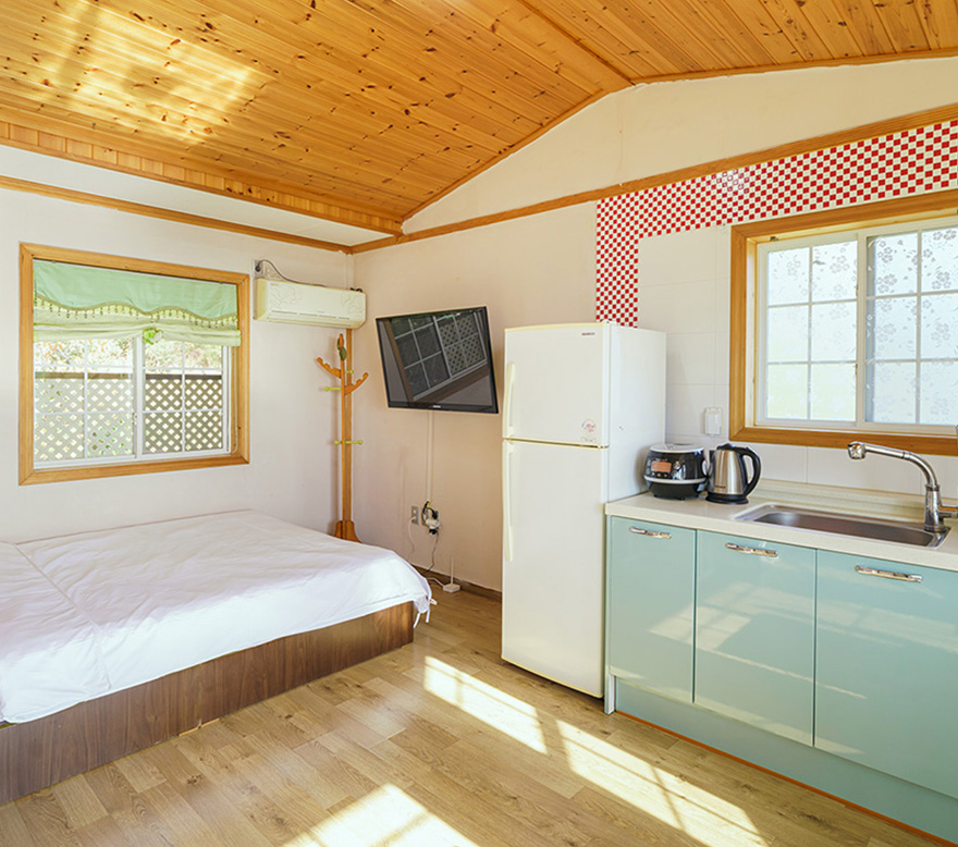 TV, 침대, 식탁, 에어컨, 냉장고, 취사도구, 전기밥솥, 드라이기, 핫플레이트, 객실샤워실, 욕실용품, 인터넷, 난방, 소화기, 일산화탄소 경보기, 화재 경보기