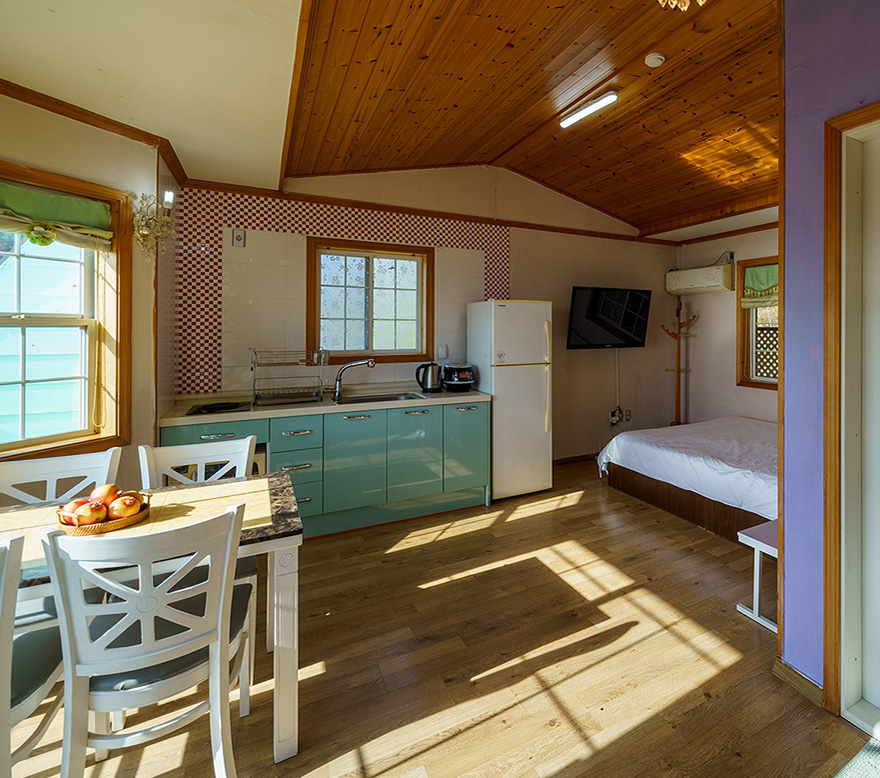 TV, 침대, 식탁, 에어컨, 냉장고, 취사도구, 전기밥솥, 드라이기, 핫플레이트, 객실샤워실, 욕실용품, 인터넷, 난방, 소화기, 일산화탄소 경보기, 화재 경보기